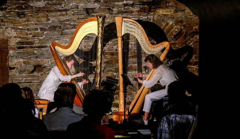 Na beëindiging van de immense cyclus Licht, één opera voor elke dag van de week, begon Karlheinz Stockhausen aan de onvoltooide cyclus Klang, één werk voor elk uur van de dag. Musica Sacra opende in 2007 met het vierde uur, Himmels-Tür voor slagwerker en houten deur. Dit jaar klinkt het eerste uur, Freude voor twee harpen. Het is een parafrase van drie kwartier op de 24 versregels, telkens één ‘moment’, van het Veni Creator Spiritus. Fragmenten daaruit worden ook gezongen, niet gregoriaans. Veni Creator is een pinksterhymne, maar wordt tevens gezongen bij twee beslissende keuzemomenten in het menselijk leven: het huwelijk en de monastieke professie.